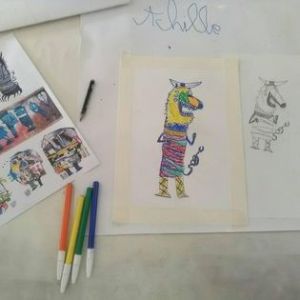 À destination des enfants de 8 à 12 ans, cet atelier est construit afin de rendre l’art accessible et pour éveiller une certaine sensibilité artistique. L’acquisition des bases du dessin se fait de manière ludique, en unissant deux mondes : Art contemporain et Histoire des civilisations antiques, pour enrichir sa bibliothèque d’images et développer sa créativité.